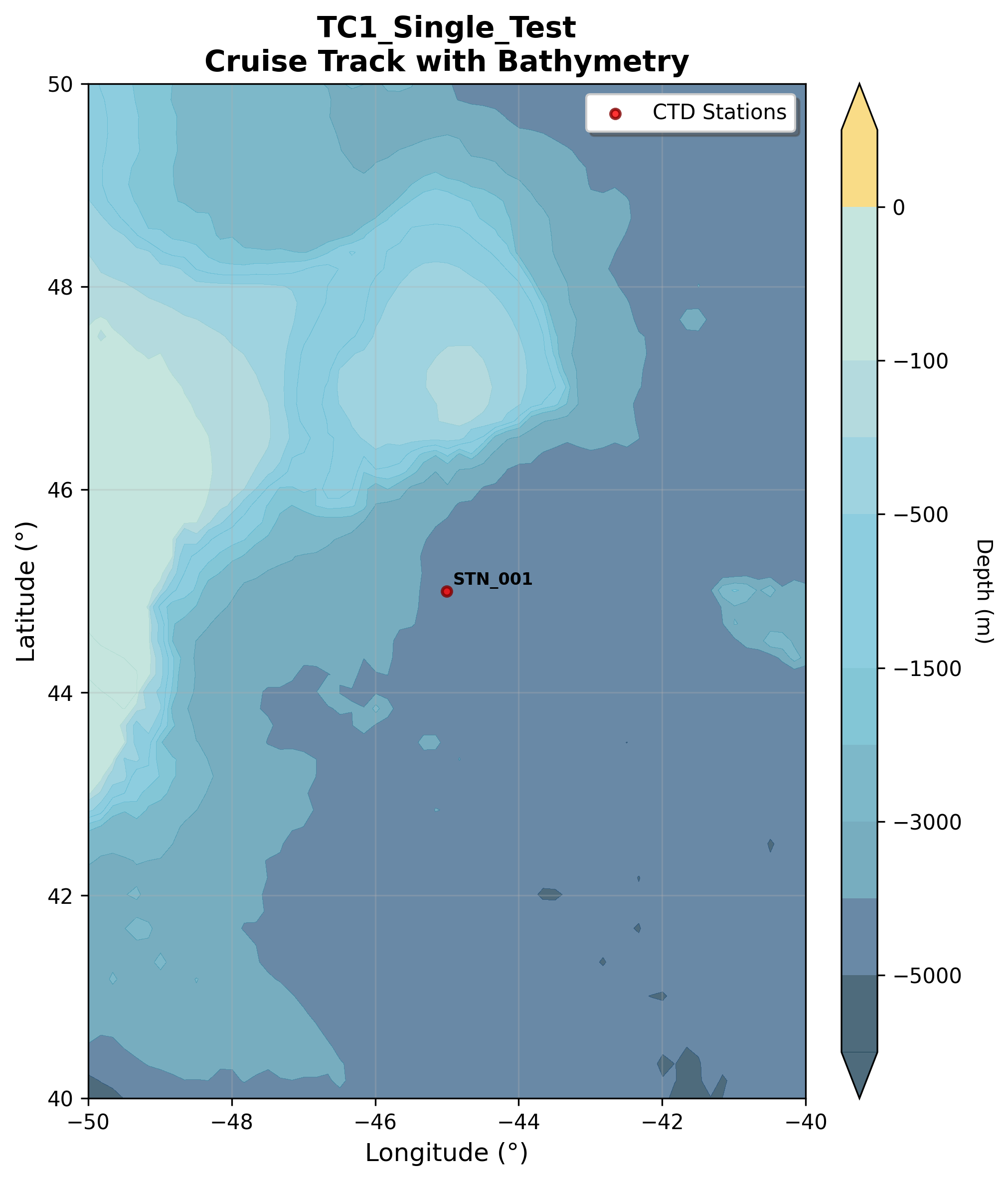 Station & STN-001 & 45$^\circ$00.00'N, 045$^\circ$00.00'W & 2850 \\