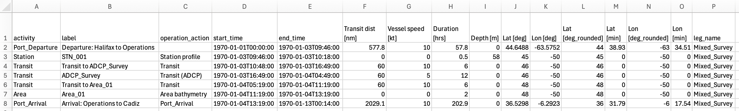 activity,label,operation_action,start_time,end_time,Transit dist [nm],Vessel speed [kt],Duration [hrs],Depth [m],Lat [deg],Lon [deg],Lat [deg_rounded],Lat [min],Lon [deg_rounded],Lon [min],leg_name