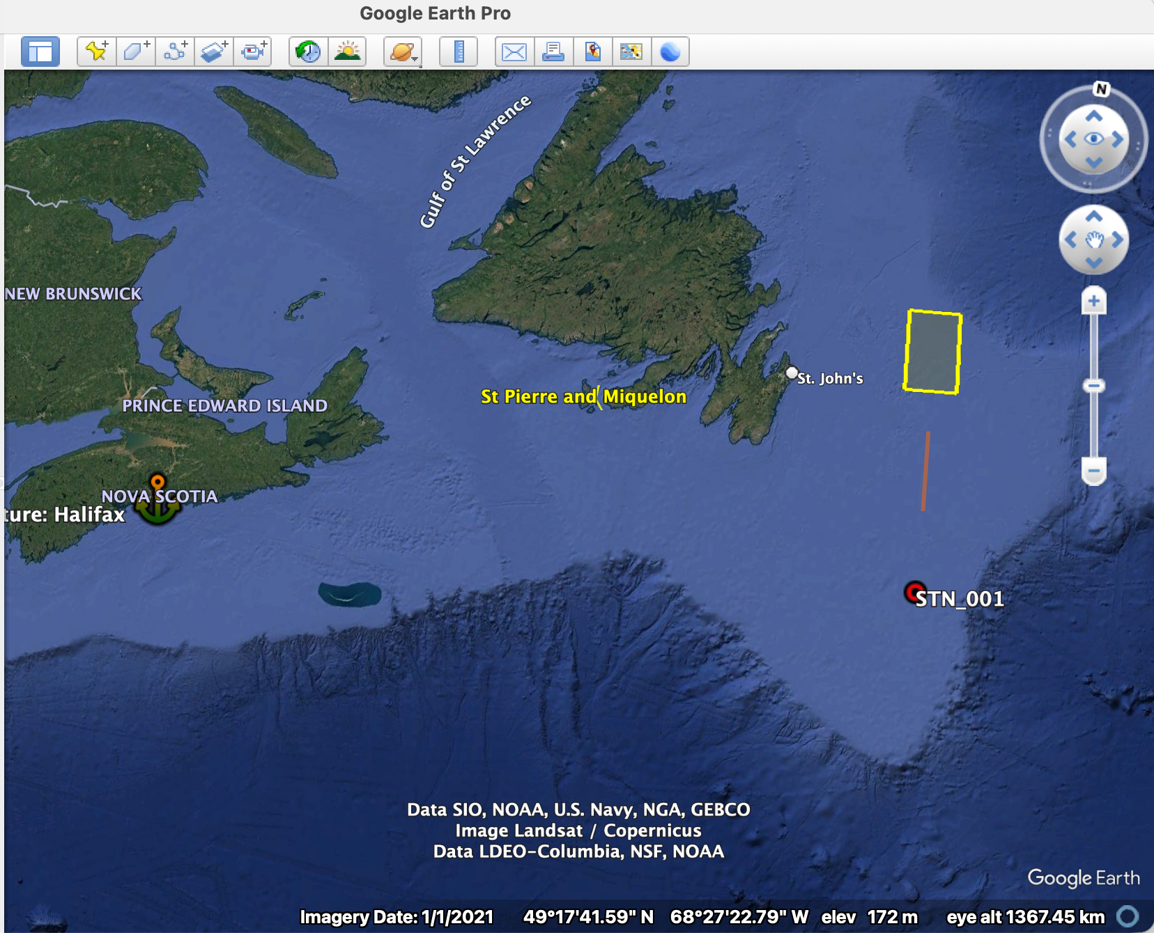 End: 47.000000°N, -50.000000°W